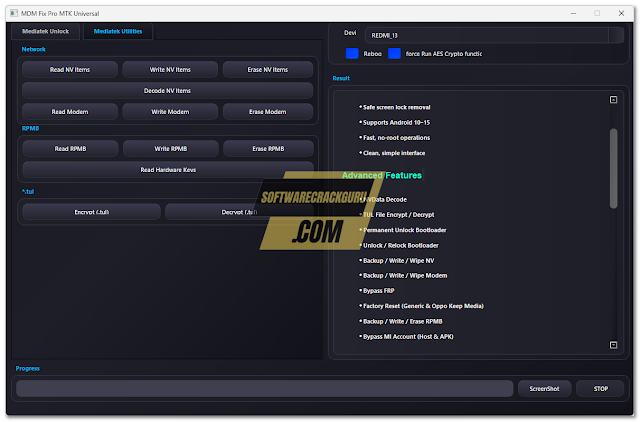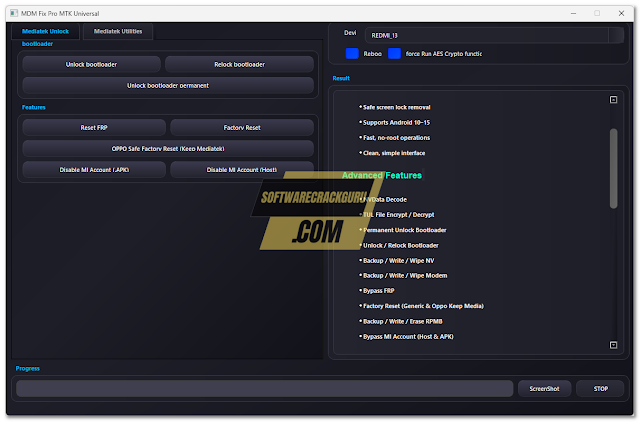 The interface of MDM Fix Pro – MTK Universal v1.0.0 might vary depending on the version, but it generally presents a user-friendly layout. Familiarize yourself with the different menus and options before attempting to fix any issues.